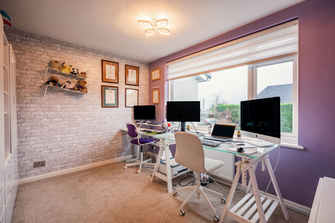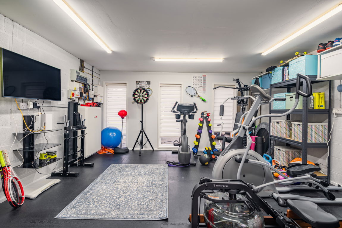 Externally, the bungalow is complemented by attractively maintained gardens which provide a peaceful and private setting. The outdoor space is ideal for both relaxation and entertaining, with ample room for al fresco dining, gardening or simply enjoying the tranquillity of the surroundings. Off-road parking further enhances the practicality of the property, while the quiet residential setting adds to its overall appeal. The double garage has been converted into a home gym, however it could easily be returned to a Garage should be buyer prefer.